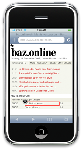 An example of a web page modification to customize output for different devices such as the iPhone.